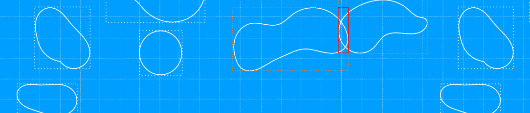 Perhaps the most popular approach to cull collisions in broad phase is to use axis aligned bounding boxes (AABB). Each object in the system is represented with appropriate AABB, so that the object is inscribed into the AABB. The AABB is a volume that has a form of a box, sides of that are parallel to the coordinate system planes. If two AABBs are not overlapping, then objects contained by them do not intersect. In the opposite case, objects may intersect and that require more accurate check in the next phase. Overlap test of two AABBs does not depend on the type of objects inscribed in them and much cheaper than any other intersection test between two objects. Another distinguishing feature of AABB is that overlapping detection can be split into independent checks, one for each axis. The image below describes how the checks are performed for 2D space.